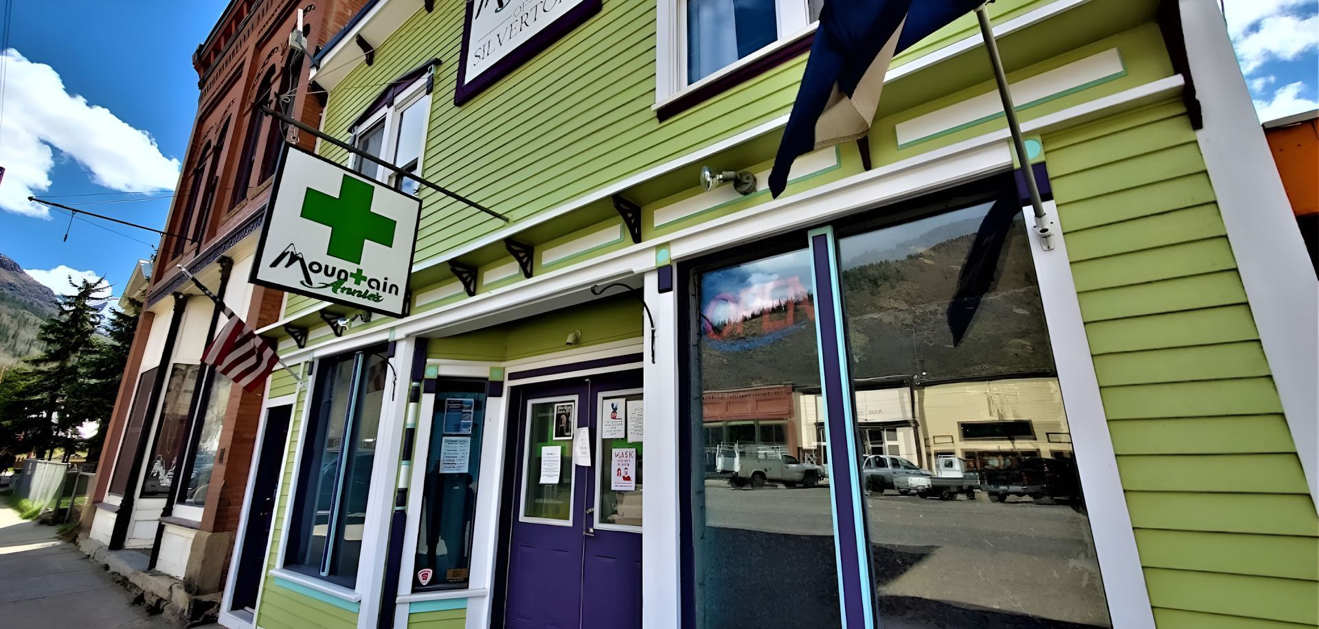 Take The Million Dollar Highway (US 550 S) from Ouray. As you approach Silverton, you will make a slight left onto Co Rd 2, then immediately turn left onto Greene Street. The dispensary will be on your right, just past The Pickle Barrel.